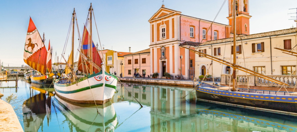 A sandy coastline extending for 7 kilometres from Zadina, where the pinewood stretches as far as the beach, permitting holidaymakers to take it easy and enjoy the cool of centuries-old pines, to the historical center, with Leonardo da Vinci’s canal harbour lined with fish restaurants renowned throughout Italy, as far as Valverde and Villamarina, neighbourhoods offering modern accommodation structures of different types and categories. Comfortable, quiet and safe beaches equipped to cater for a cosmopolitan clientele. The broad avenues and extensive vegetation give Cesenatico a very relaxing look, which is further enhanced by the quaint squares of the old-town centre, the numerous mooring facilities full of pleasure craft, the two large town parks and the multicoloured sails raised on the boats in the Maritime Museum. Cesenatico offers all this and lots moreā¦